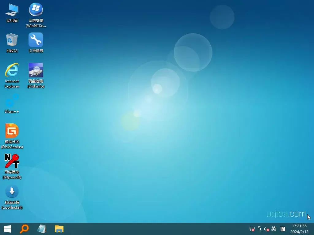 根据所安装系统版本的不同,进入不同的 PE 桌面,安装旧版系统建议使用旧版桌面,以达到最佳兼容性。