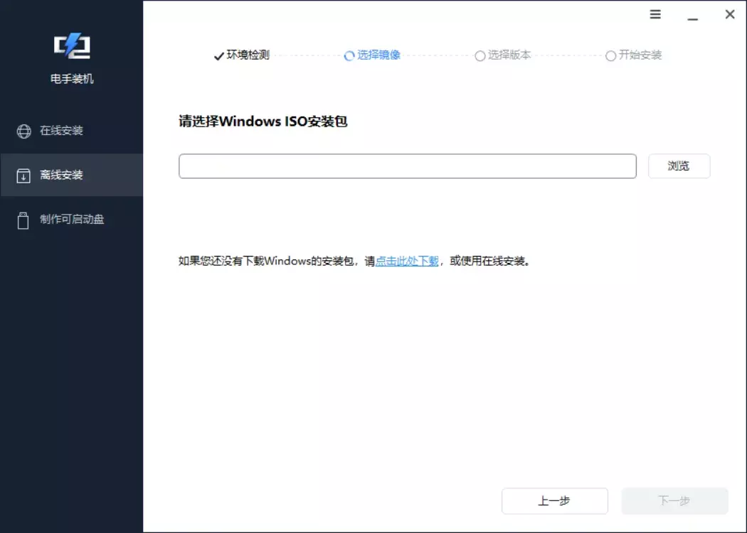 而离线安装则是安装已经下载到本地的镜像系统,需要自己先下载镜像到本地才能使用,如何不知道从哪里下载,电手装机也亲切提供了一部分可用的下载方式。